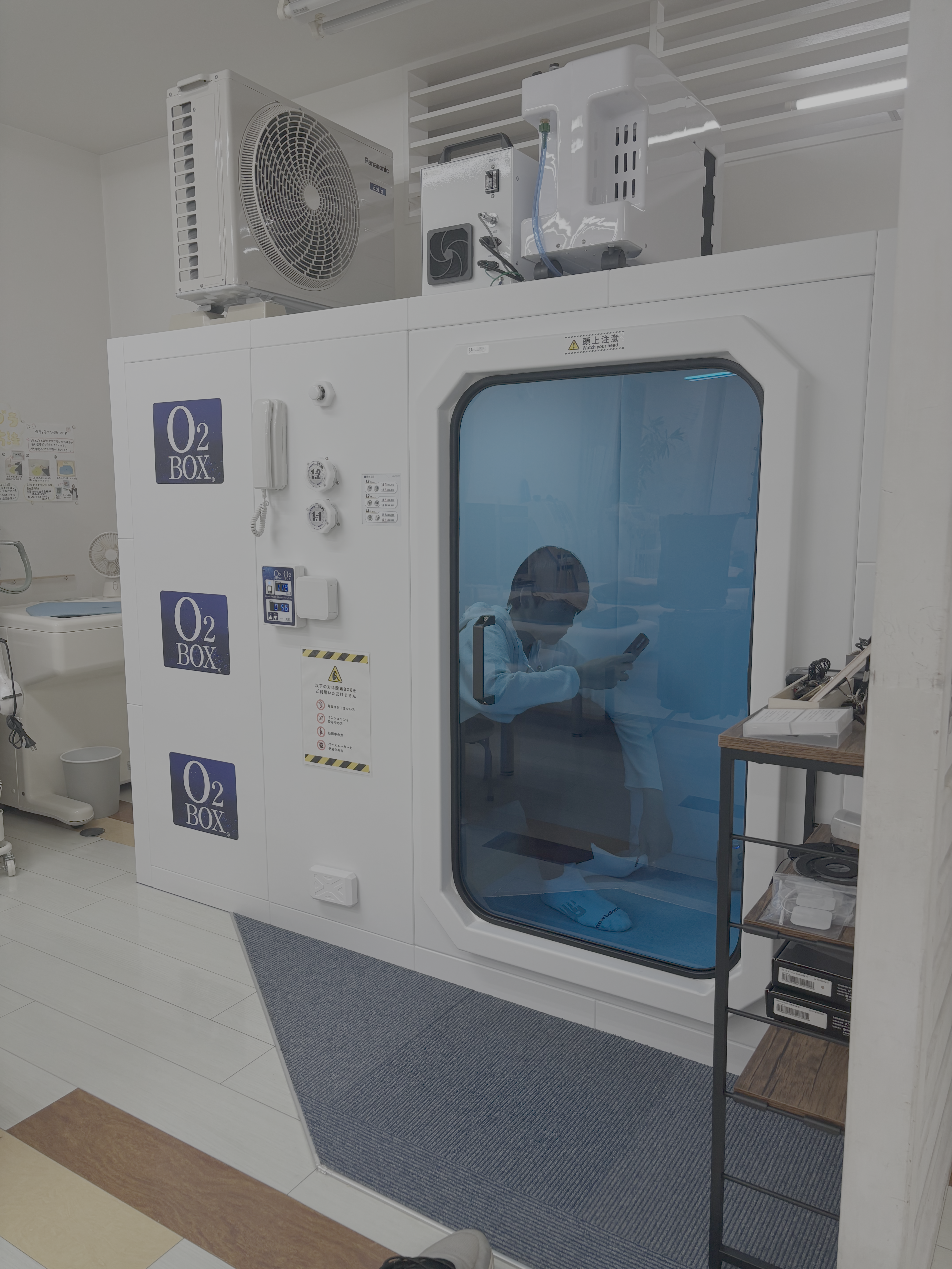 - 物理療法:微弱電流(エレサス)による細胞修復促進、および酸素BOX(30分)による組織酸素分圧の向上。
